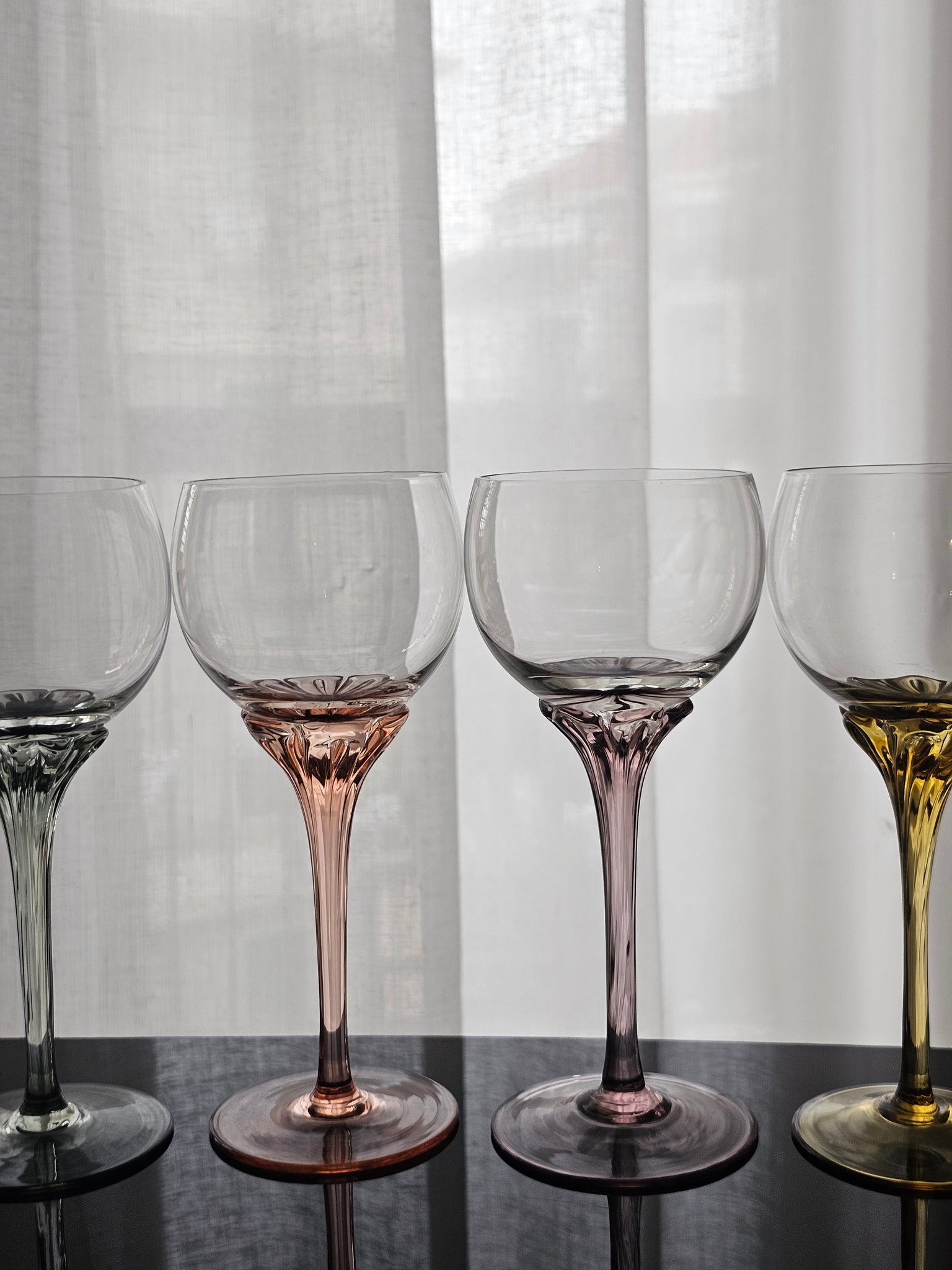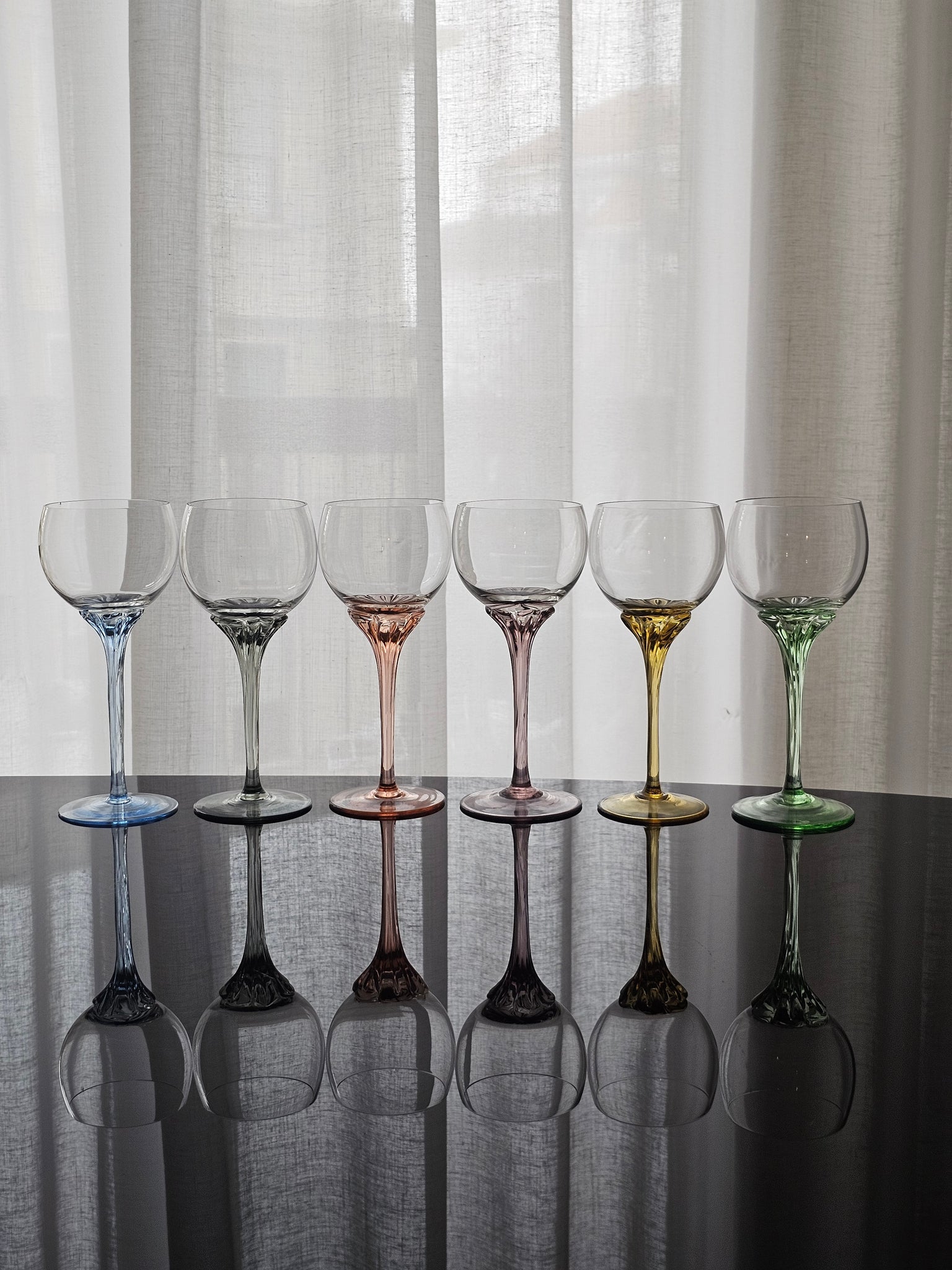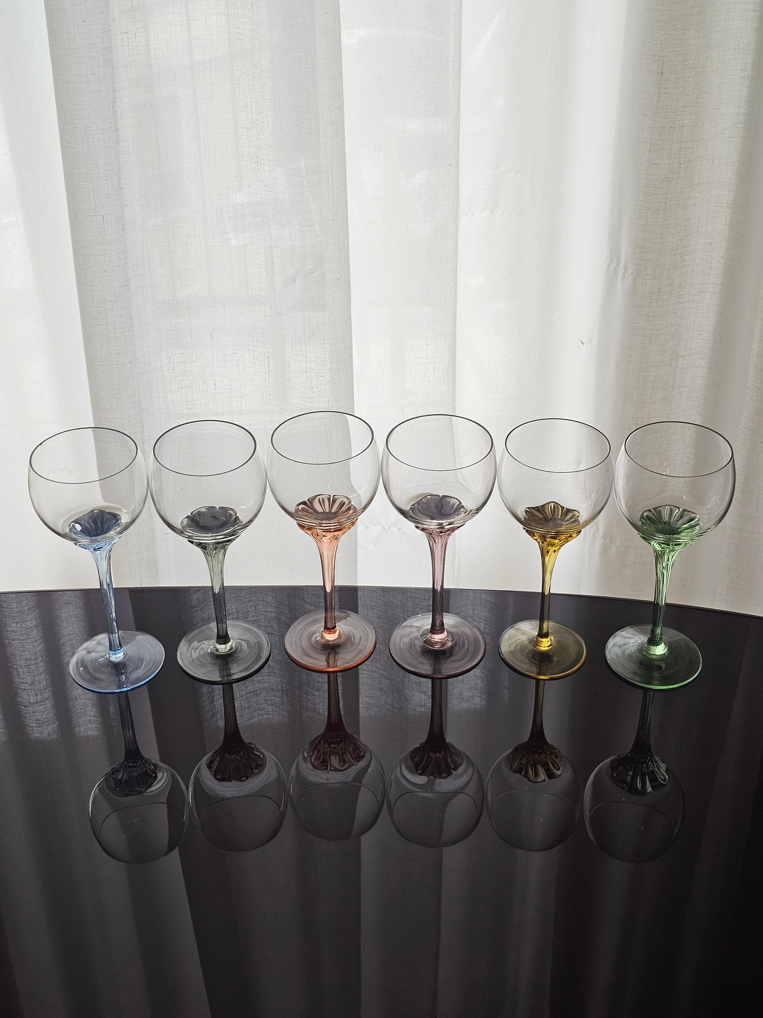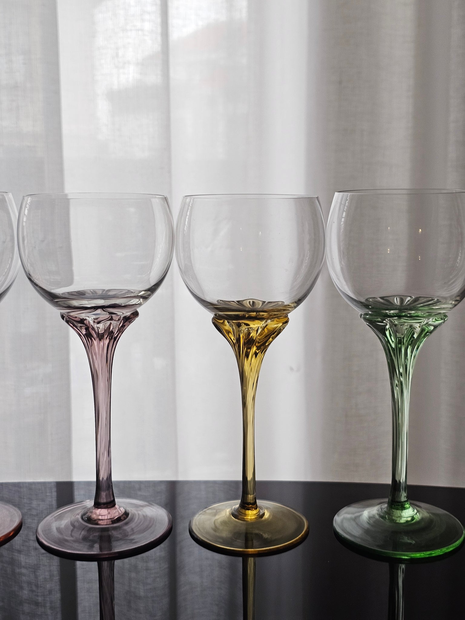 Bellissimo calici colorati in cristallo dj Bohemia, con stelo colorato dalle forme morbide e delicate.