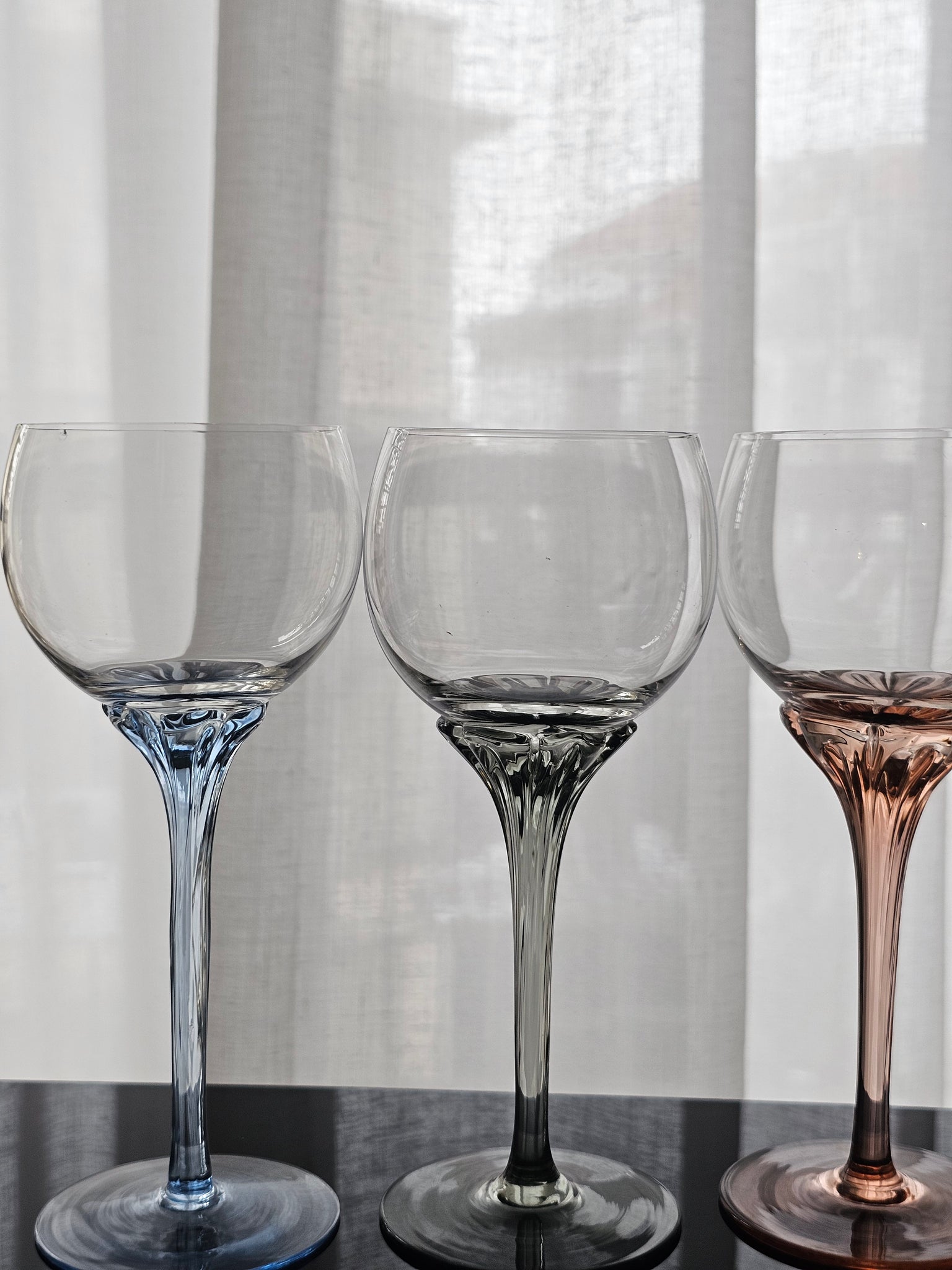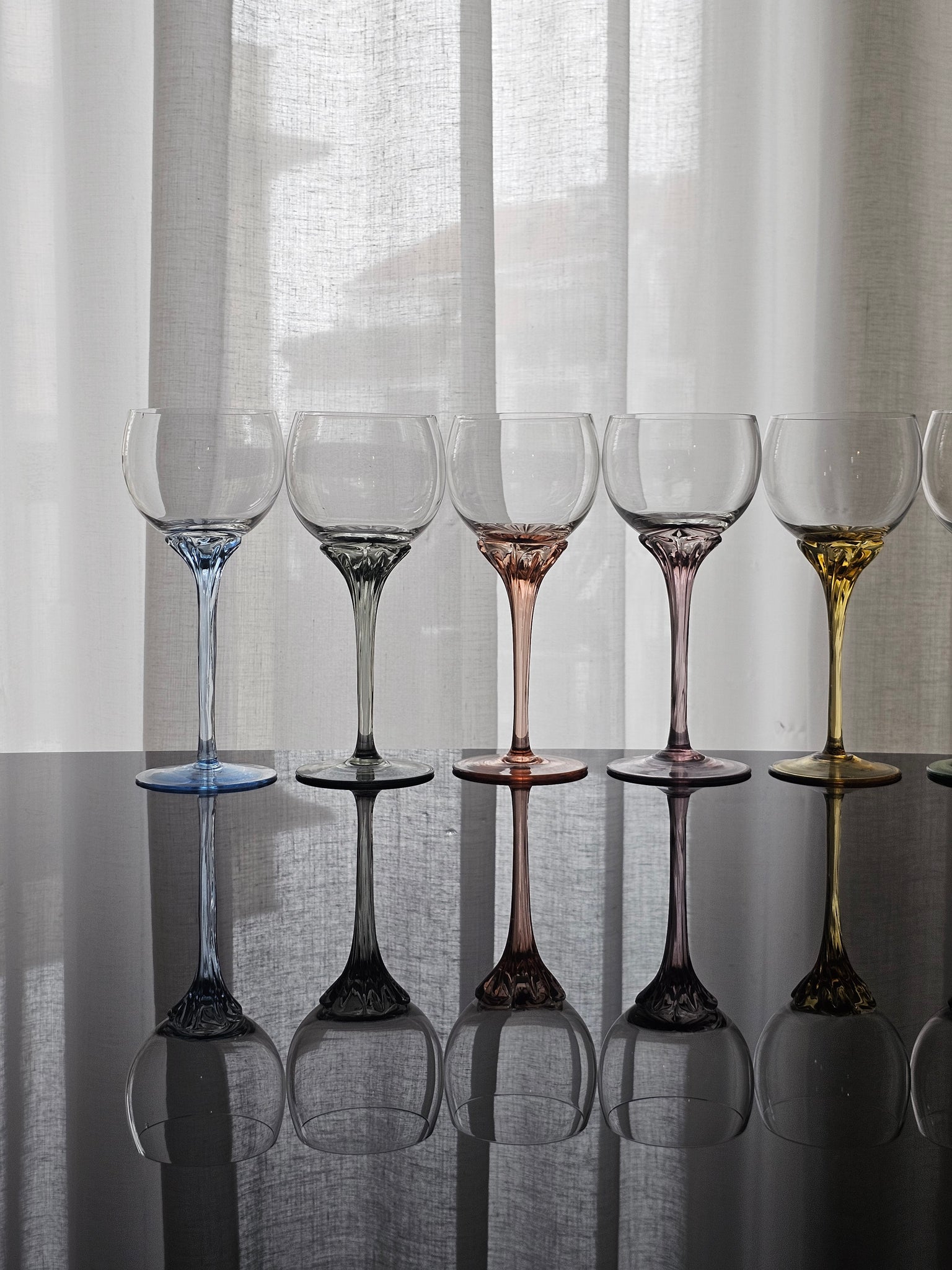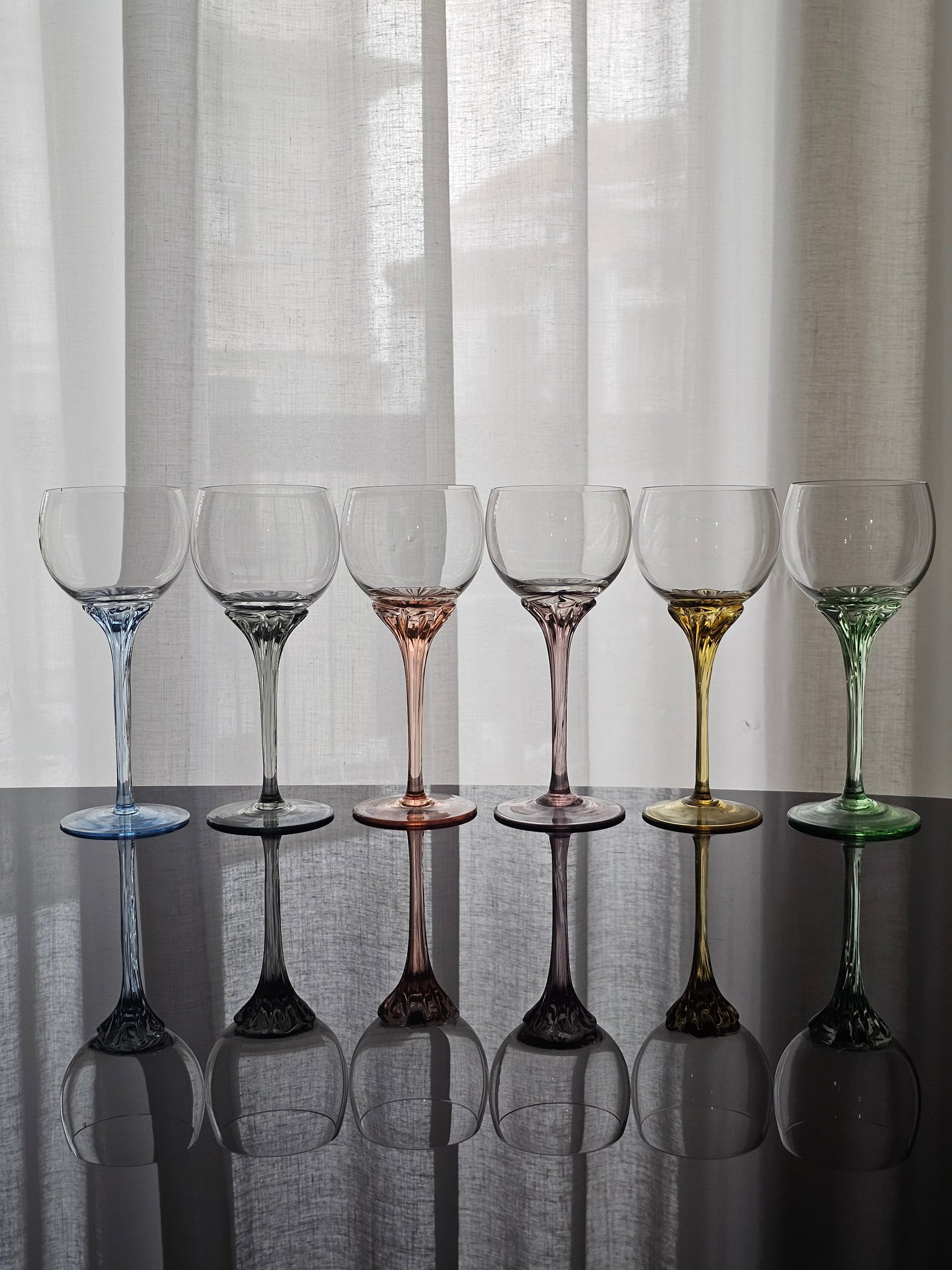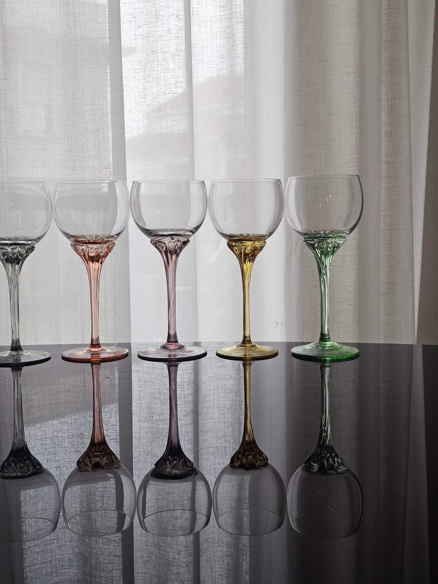 Bellissimo calici colorati in cristallo dj Bohemia, con stelo colorato dalle forme morbide e delicate.