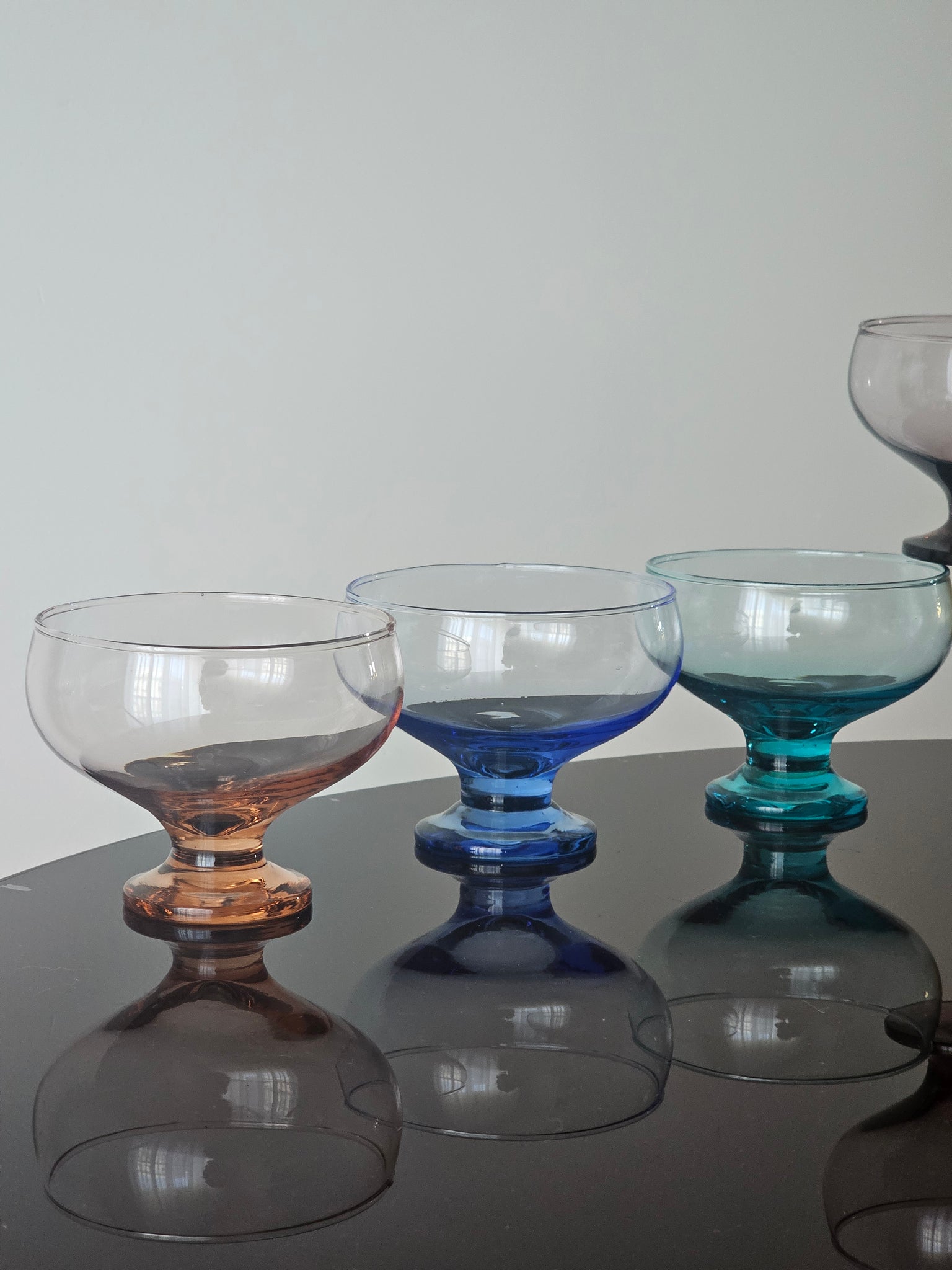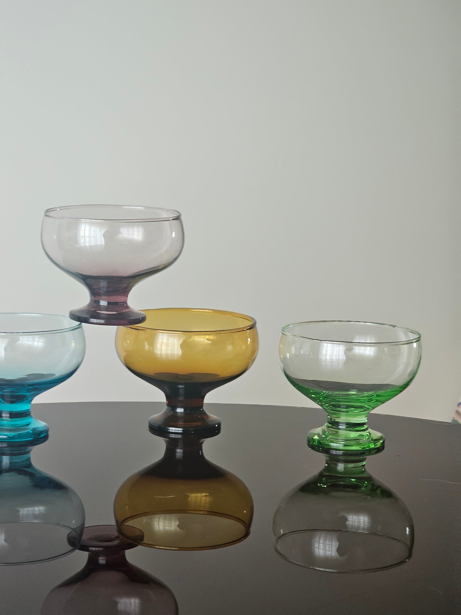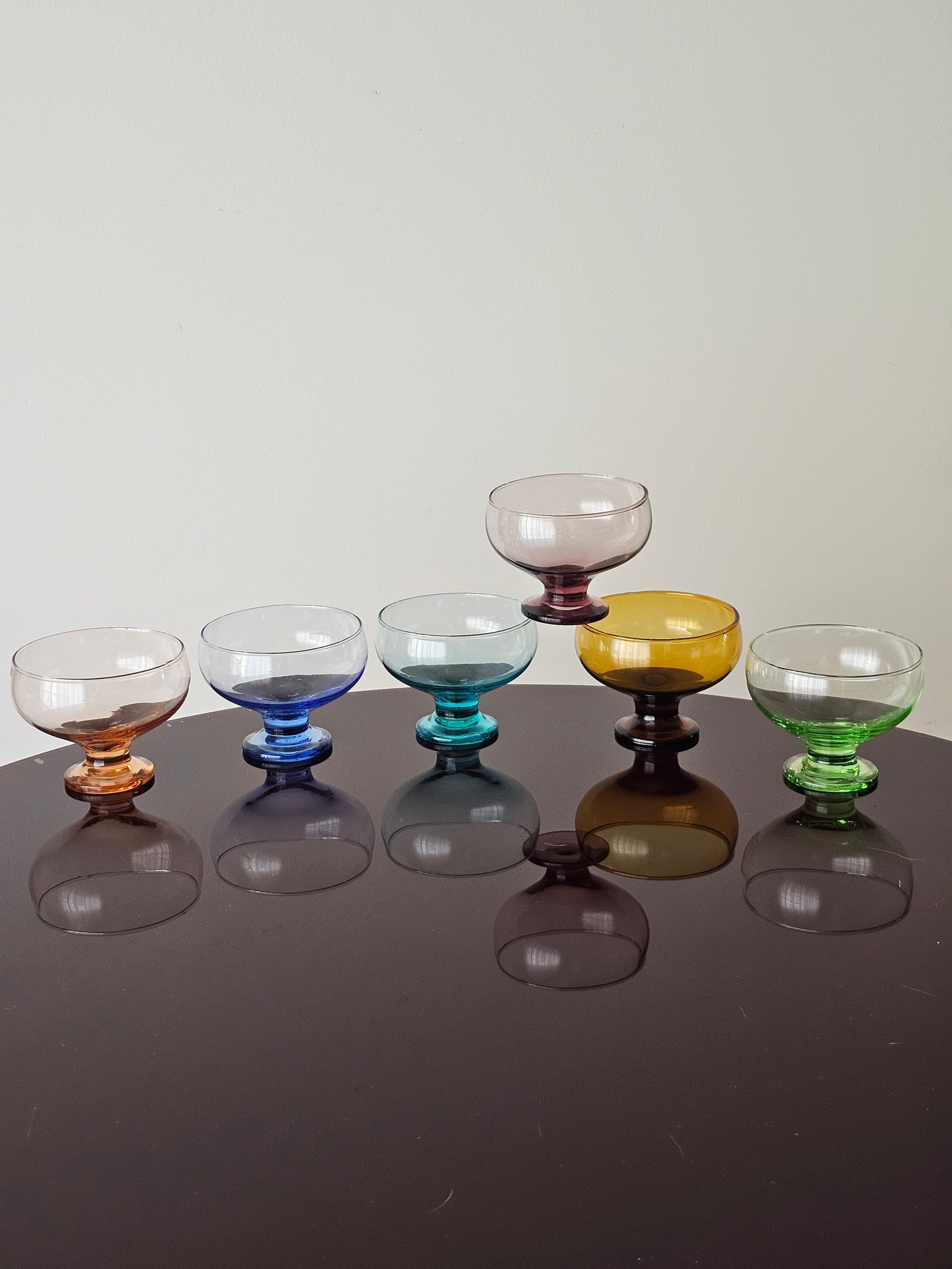 Coppette in vetro soffiato colorato, ognuna in un colore diverso.