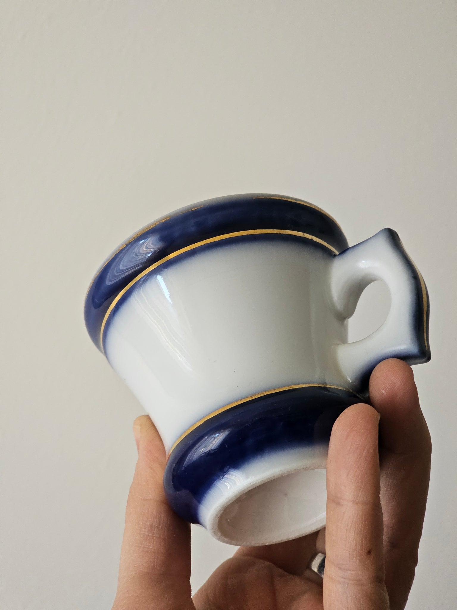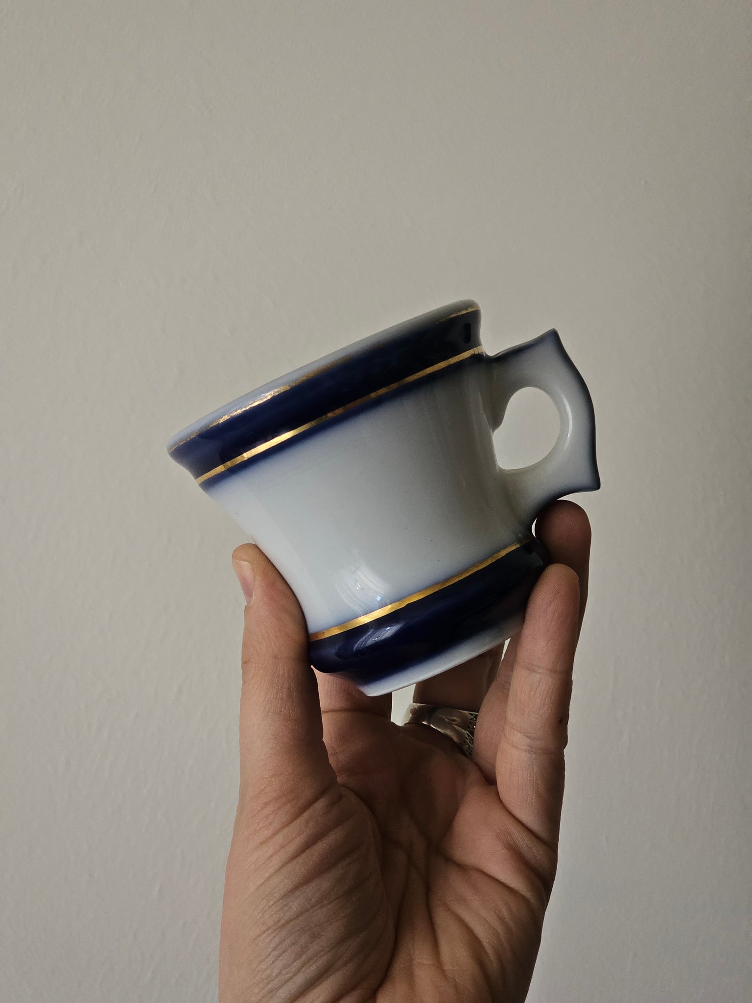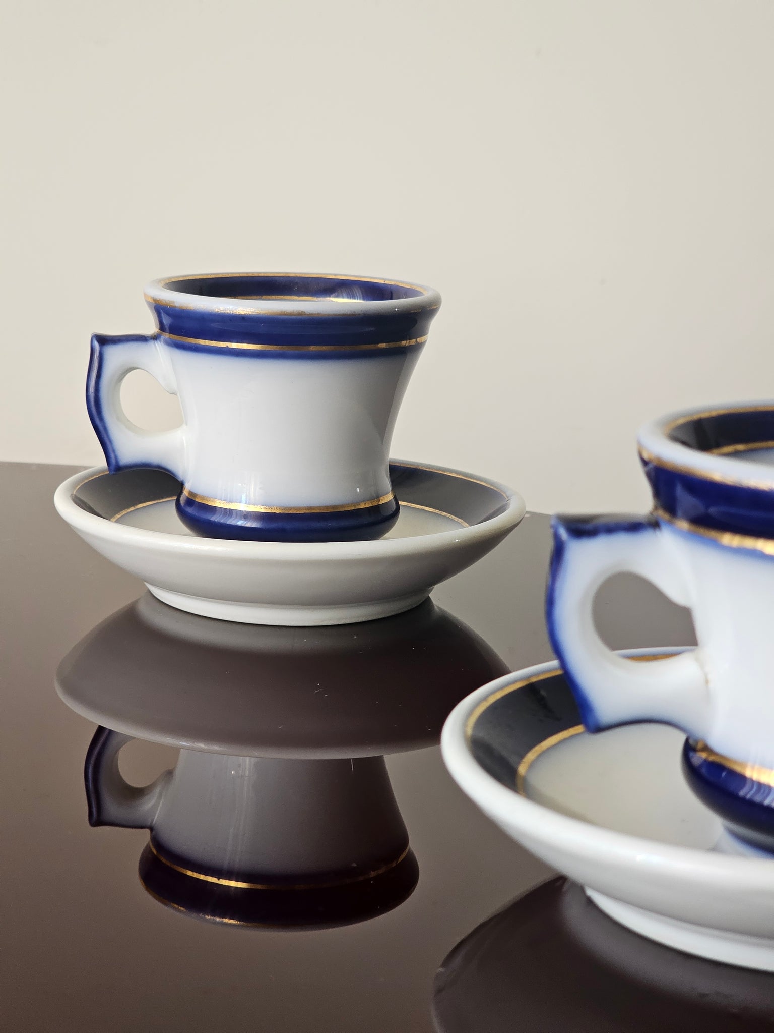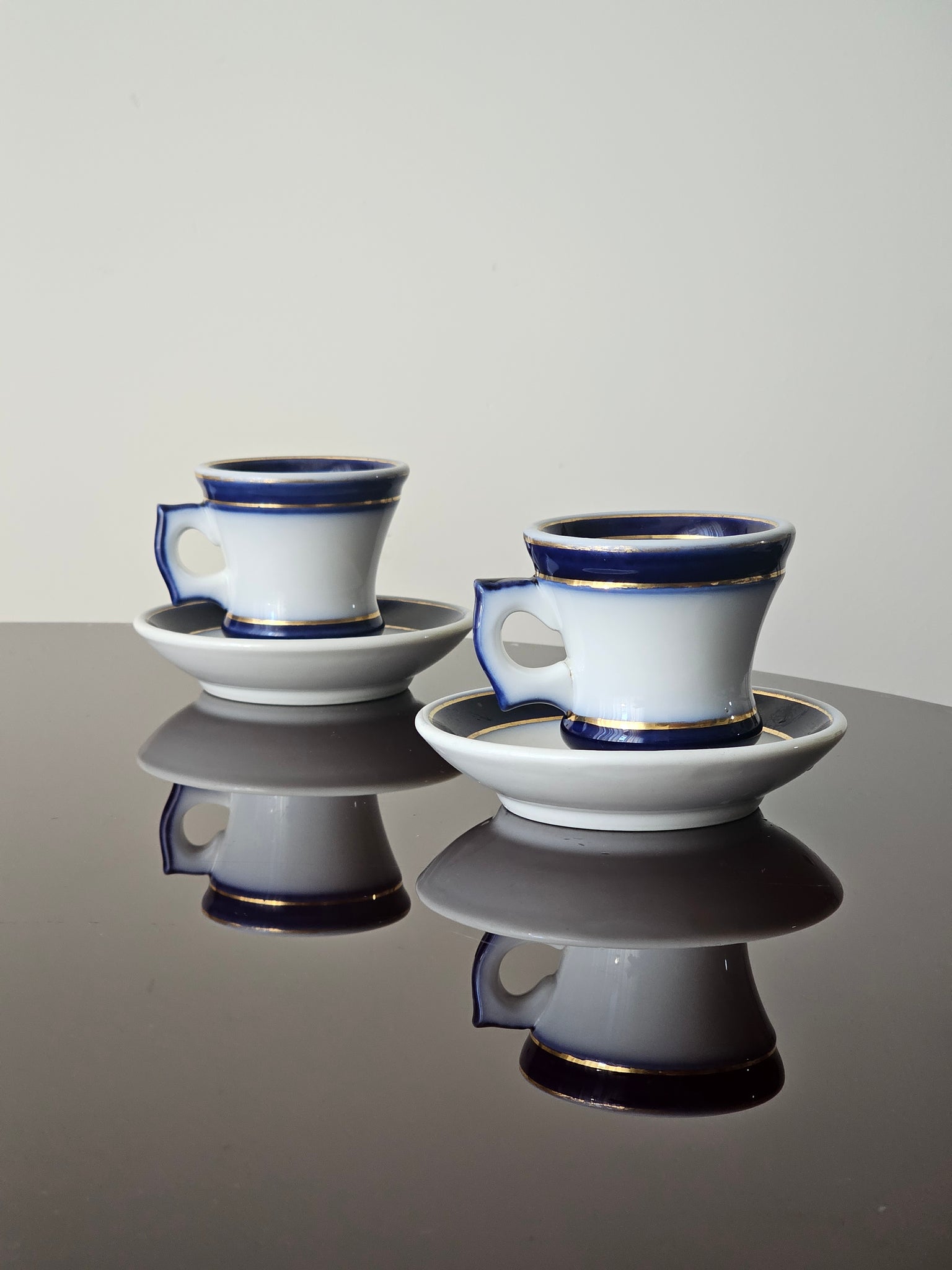 Una volta terminato il caffè, la tazza riscaldata viene capovolta e il piccolo incavo alla base funge da bicchierino per versare un goccio di liquore (solitamente cognac o "eau de vie").