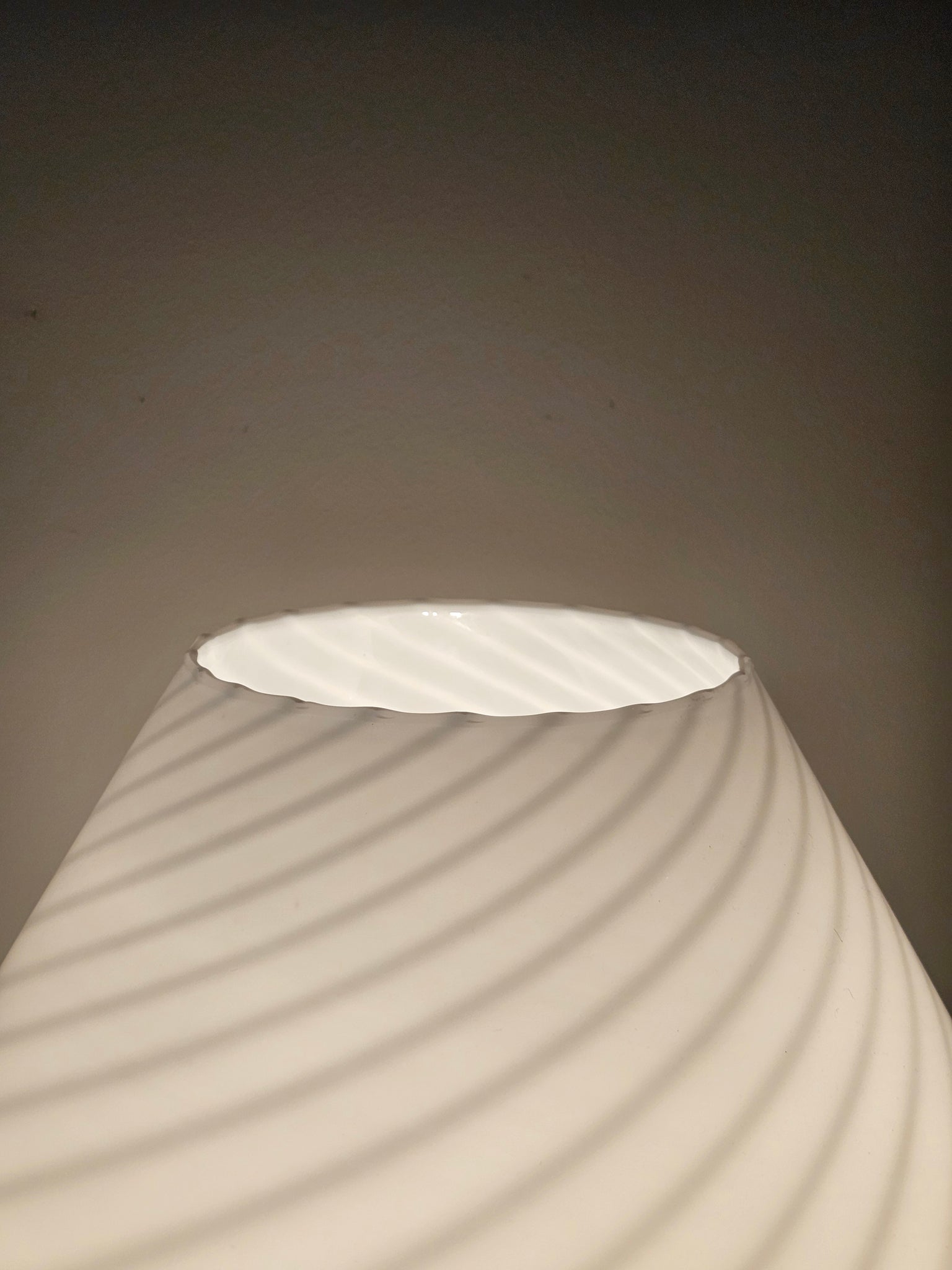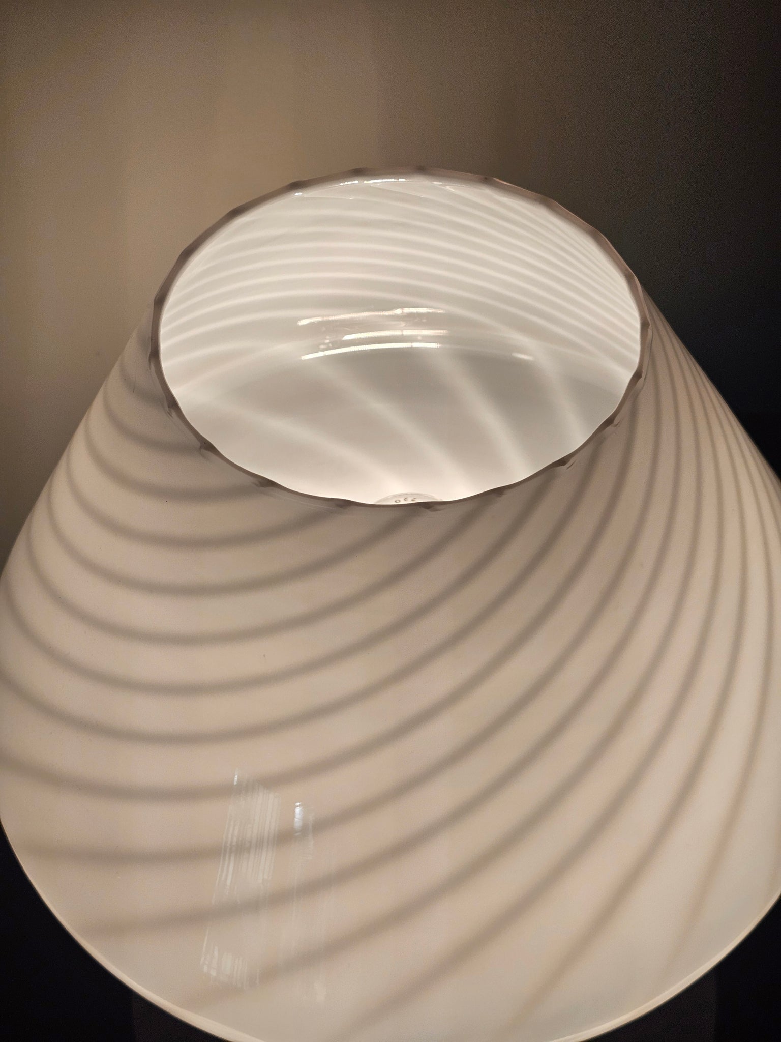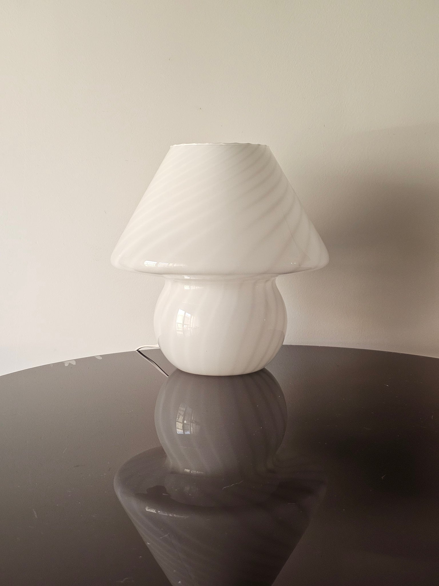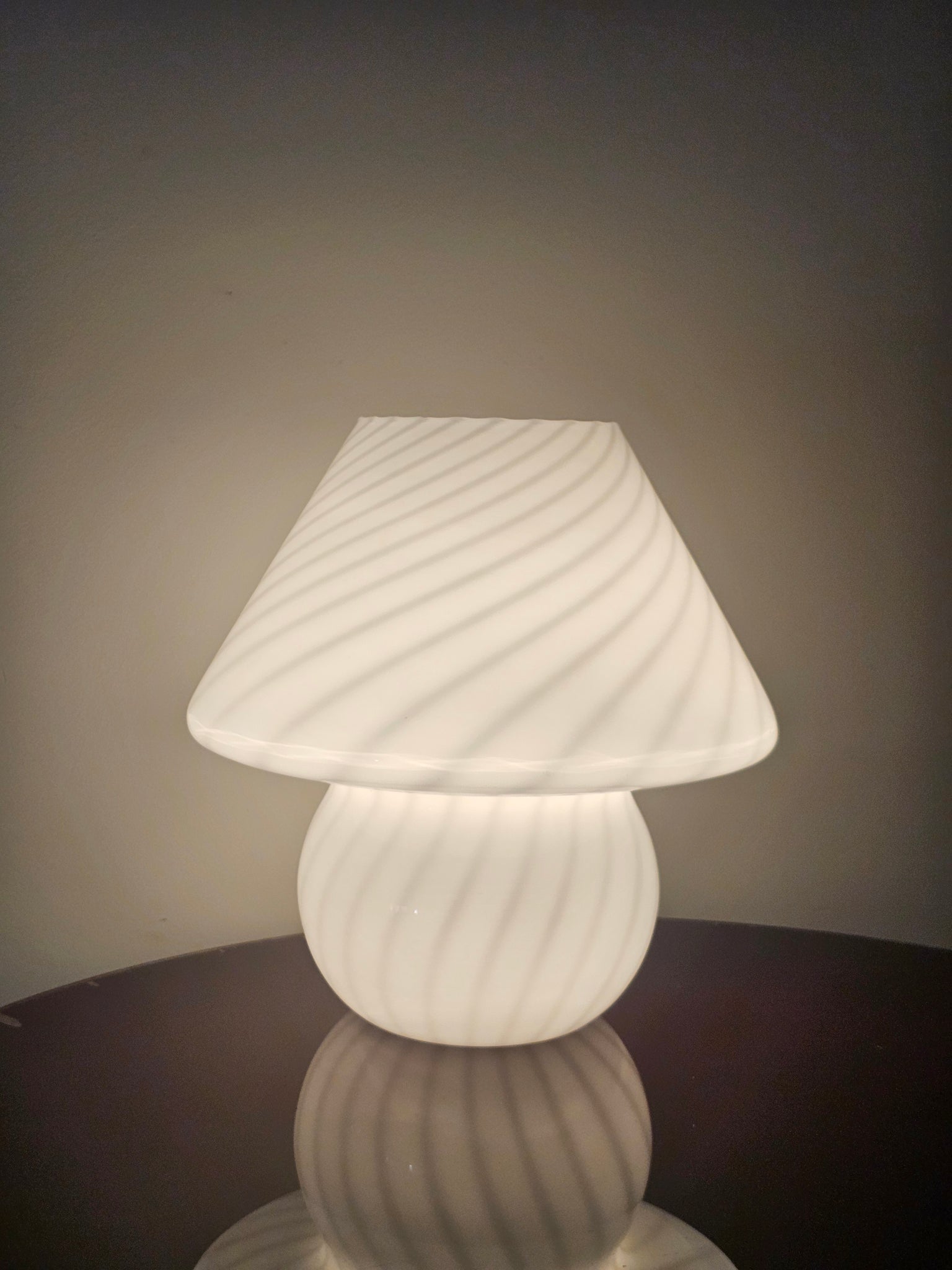 Lampada fungo in vetro di Murano con decorazione a spirale.