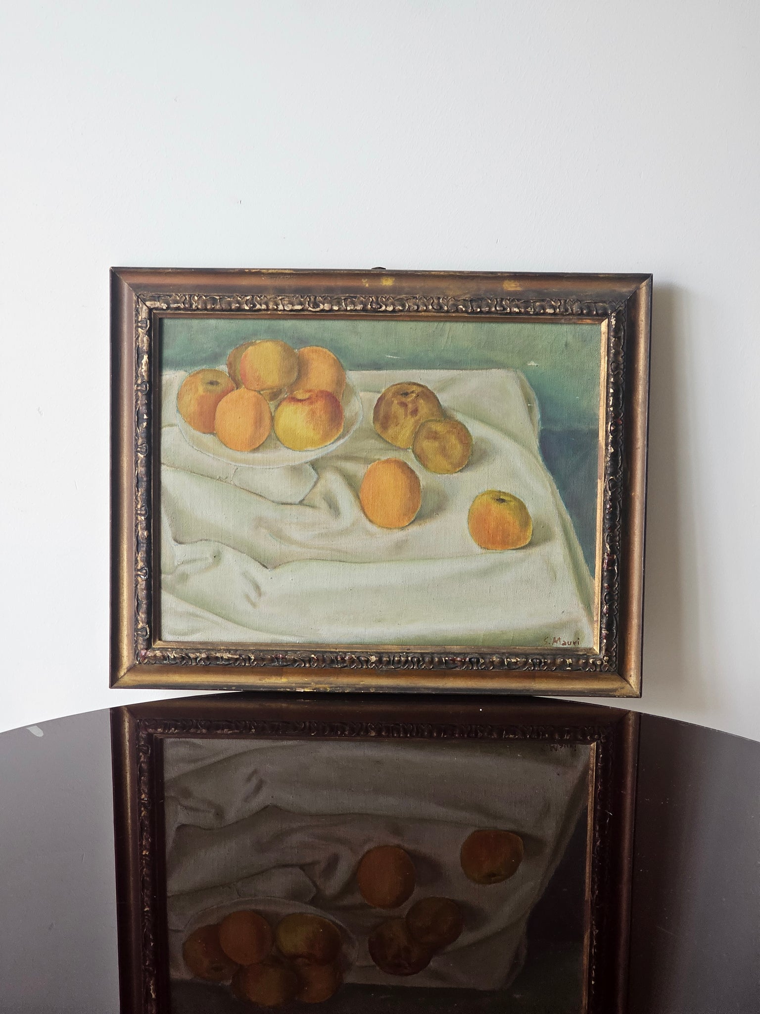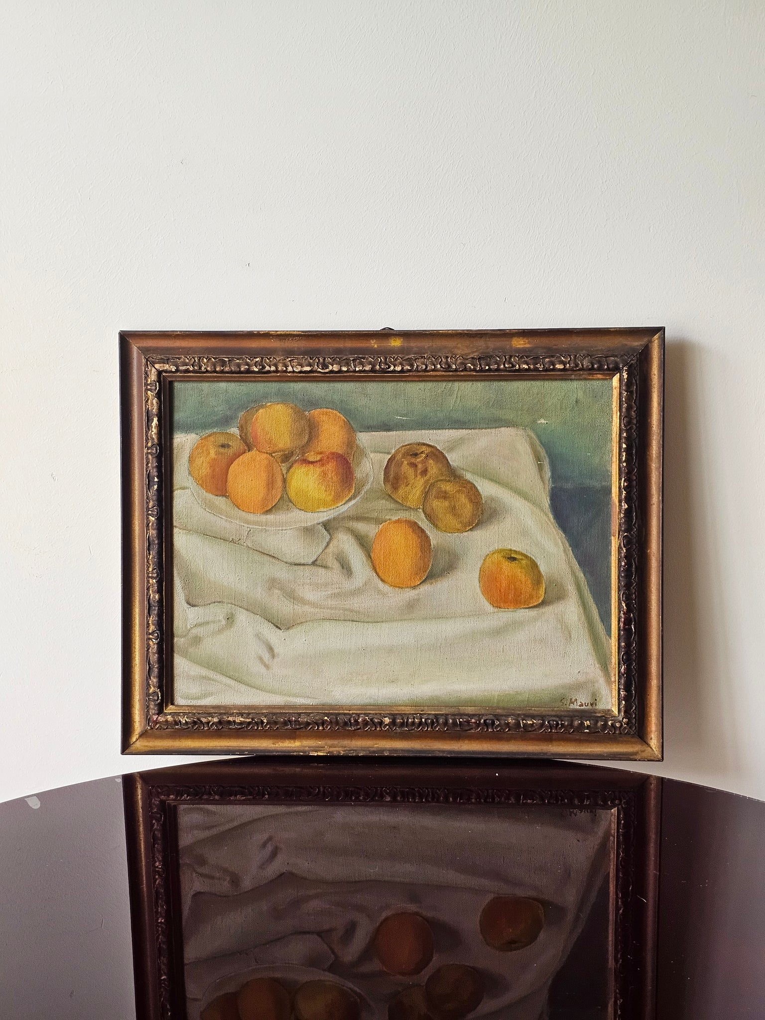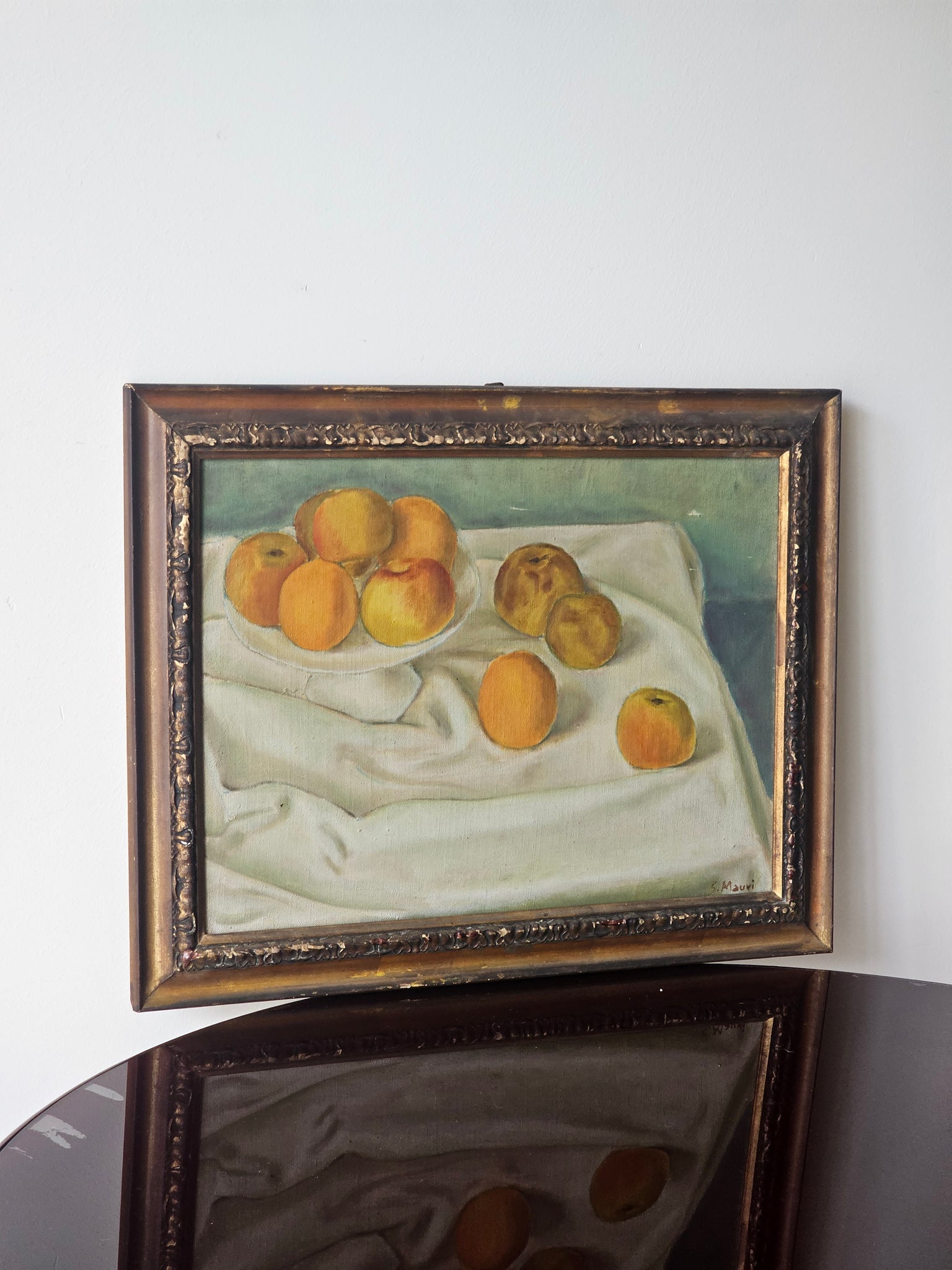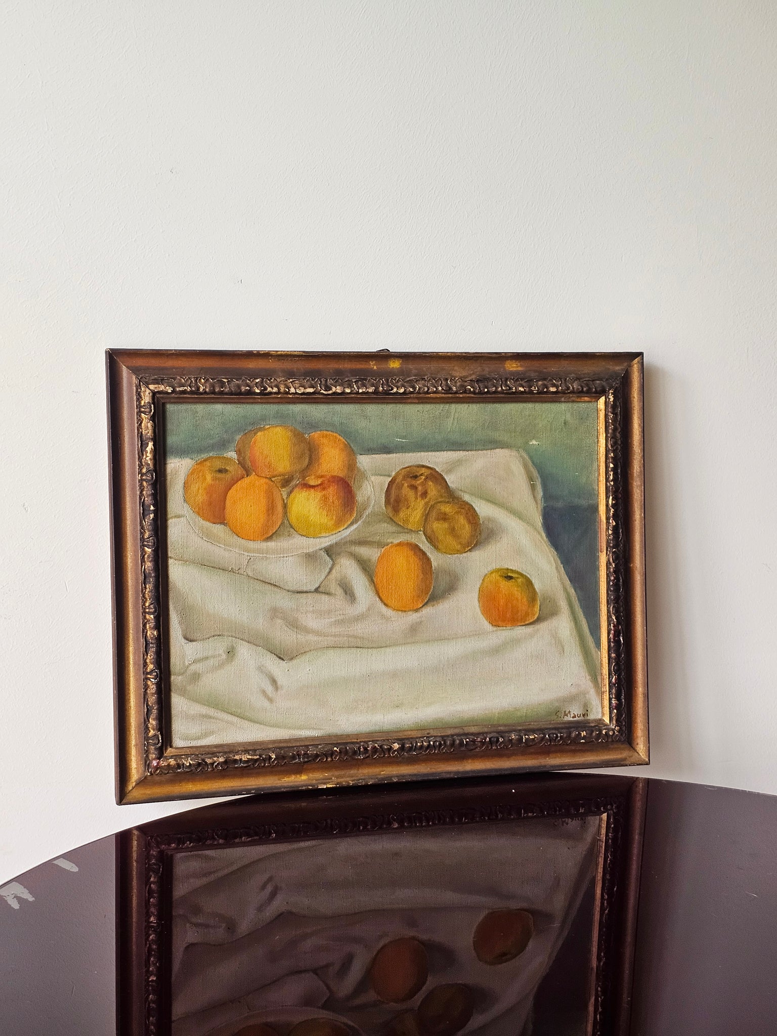 Natura morta luminosa e dai colori vivaci dipinta olio su tela dal pittore monzese S. Mauri.