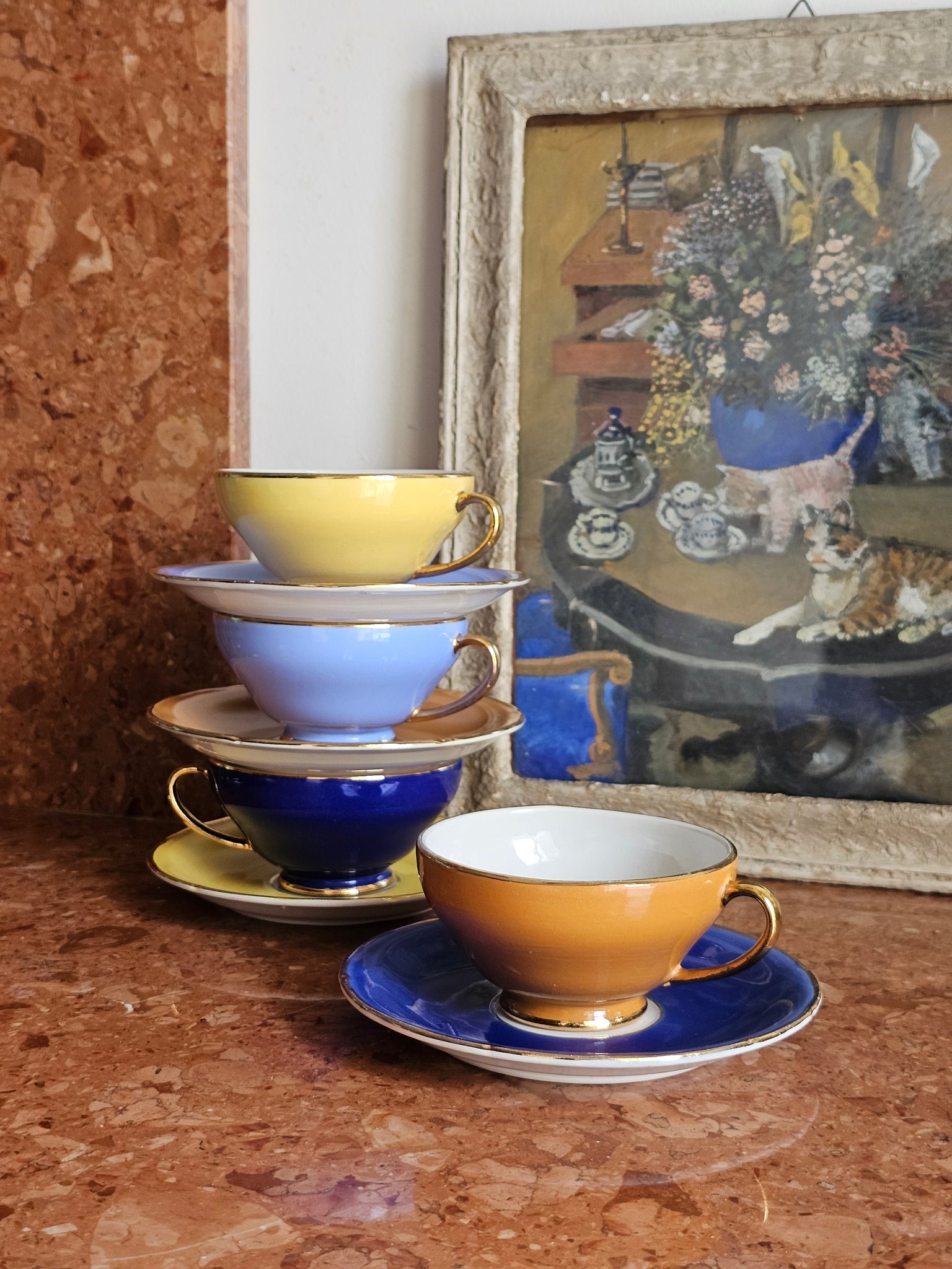 Meraviglioso set di 4 tazze da tè degli anni '40 del marchio italiano, friulano, La Scala di Pordenone